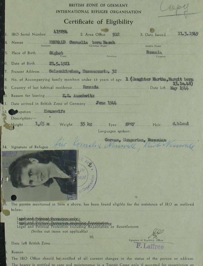 1: Arolsen Archives, Signatur 32110000, 3.2.1 IRO “Care and Maintenance” Program, Dokument 79525397